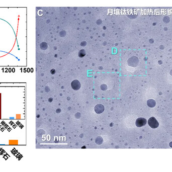 科研团队通过对不同月球矿物的进一步研究,还发现月壤钛铁矿加热后,可以同步生成大量单质铁和水蒸气气泡,是名副其实的月球“蓄水池”。